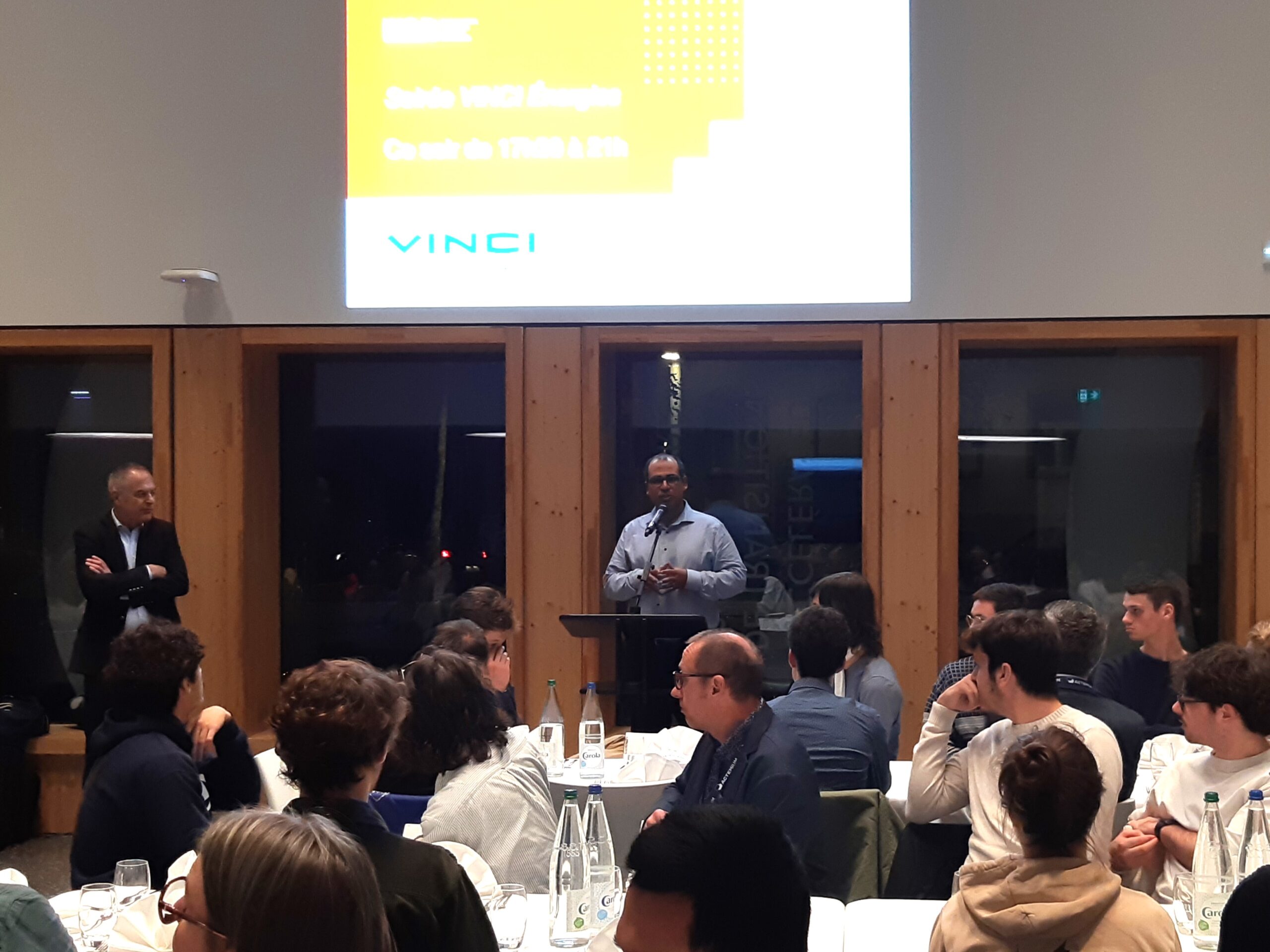Étudiants, enseignants et représentants de VINCI Énergies ont pris part à cet événement incontournable. Dès 17h30, les étudiants ont été accueillis devant l’amphi A&I pour une présentation inspirante de VINCI Énergies, revenant sur les valeurs du groupe, ses domaines d’expertise et les opportunités de carrière offertes aux jeunes diplômés.